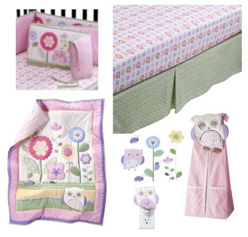 - - Bundle Includes: Owls and Floral 3 Pc Nursery set (comforter, sheet, dust ruffle), Floral Crib Bumper, Petit Fleur Diaper Stacker, Owl Night light, & Petit Fleur Owls and Floral Circo Wall Art Decals