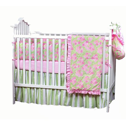 Bacati Flower Basket Pink and Green Crib Bed Set - a2zchild.com ...