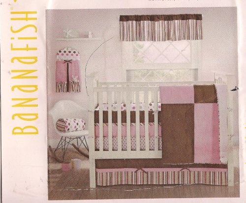 Banana Fish 4 Piece Crib Bedding Set Contains: quilt, crib skirt, bumper and fitted sheet. Quilt has two panels each of brown and pink velvet with stripe cord ...