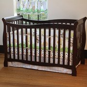 - Converts to toddler bed and daybed with conversion kit (sold separately) Delightfully stylish sleigh crib Converts to full-size bed with bed rails sold separately 4 mattress height settings Solid wood and wood veneer construction Non-toxic Chocolate finish ASTM/JPMA certified Assembly required Dimensions: 58.25"L x 60.6"W x 38.25"H Bedding not included