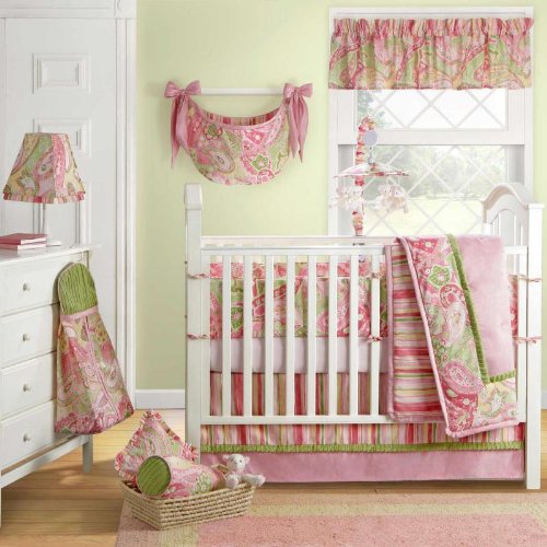 Chloe Pink and Green Paisley 3 Piece Crib Bedding Set. FREE SHIPPING. Prettiness, practicality and versatility are all important when it comes to choosing baby...
