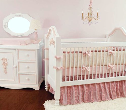 Dozen Roses 3 Piece Crib Bedding Set. Gorgeous, glamorous and elegant. Soft pink rose buds adorn this crib bedding paired with embroidered cream faux silk. Bumper is ...