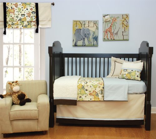 Your little adventurer will love getting tucked in to this Explorer Toddler Bedding Set from Doodlefish! Rich chocolate corduroy incorporated with classic khaki and light blue make this baby bedding perfect for any little boy's room. Details featured in the vintage world map fabric will be sure to make a lasting impression in your nursery. Add on the sheets, window valances and decorative pillows to complete your boy's toddler bedding set. Add the toddler coverlet and pillow to your existing crib skirt and sheet and go from nursery to "big kid" room without changing your room decor. This toddler bedding set includes a reversible coverlet and pillow sham with insert.