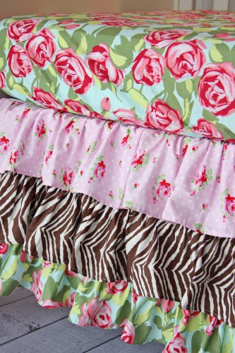 This adorable 2 piece set is perfect for the design savvy mommy and baby! Bright Roses and Funky Zebra prints make up this must have crib bedding. Leave it to Caden Lane to create this stylish 3 tier ruffled skirt. This bedding is made in the USA and is definitely one of a kind. Limited Quantities will be available Set includes: 1 crib skirt and 1 fitted crib sheet Handmade to order. 4-6 Weeks.