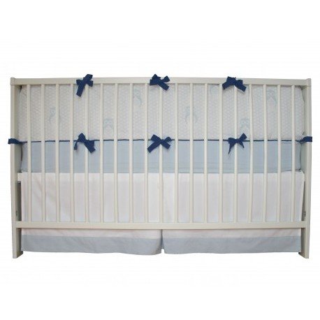 Put your little night owl to sleep with this sweet crib set.The bumper is printed with an owl and feather pattercoordinating with a solid sheet and skirt (blanket sold seperately).The set is beautifully detailed with grosgrain piping and ties on the bumper and inverted pleats on the skirt.All this style and safe too!Made of 100organic cotton and free of harmful dyes and chemicalsthis crib set is a safehealthy choice for your little ones first bed.100Organic Cotton Percale (220 Thread Count)