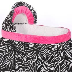 Black & White & Pink All OverOur Minky Zebra Bassinet is a bold display of a unique combination of design elements. The classic bassinet style presents a full gathered skirt that falls softly to the floor, a wide waist band and ruffled hood. Combine that with a splash of bright pink minky dot fabric and a striking black and white zebra print - youve got a bassinet to wow every viewer Your baby is unique - your baby deserves a bassinet that is unique