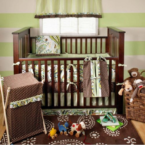 Lime & Brown Paisley Splash 4 Piece Crib Bedding Set - My Baby Sam ...