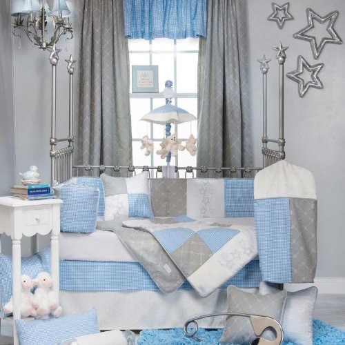 The Starlight 4 Piece Crib Bedding Set by Glenna Jean features a silver grey bright baby blue and white ... Pieces 4 Piece Crib Bedding Sets; Set Includes Bumper ...