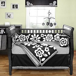 The Zia 4-Piece Baby Bedding Set by Bananafish has a modern floal motif in black and white with coordinating fabric designs. Create a modern theme in your baby girl's ...